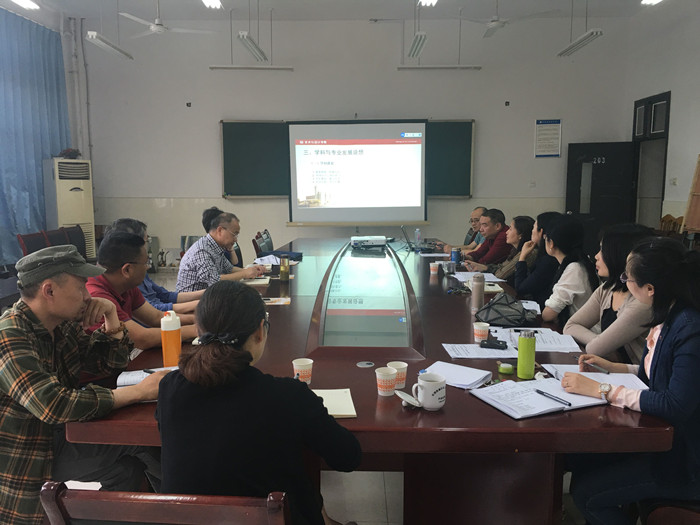 美术与设计学院院长范迎春就学院的学科专业建设情况进行了汇报,汇报主要内容包括现有学科从学科方向和梯队建设、学科建设措施、学科建设成果及影响力、专业建设现况、学科与专业发展设想等方面。美术与设计学院各教研室主任就各专业的现状与发展发表了自己的看法。