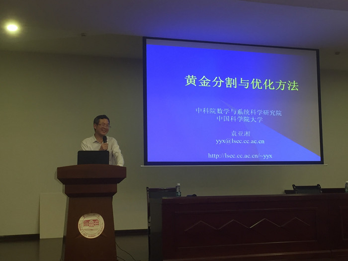 5月9日下午,应我校邀请,中国科学院袁亚湘院士在我校城南书院校区报告厅举办了题为“黄金分割与优化方法”的学术报告。参加学术报告的有城南书院、数学与计算科学学院相关负责人以及城南书院的部分师生。报告由校长童小娇主持。