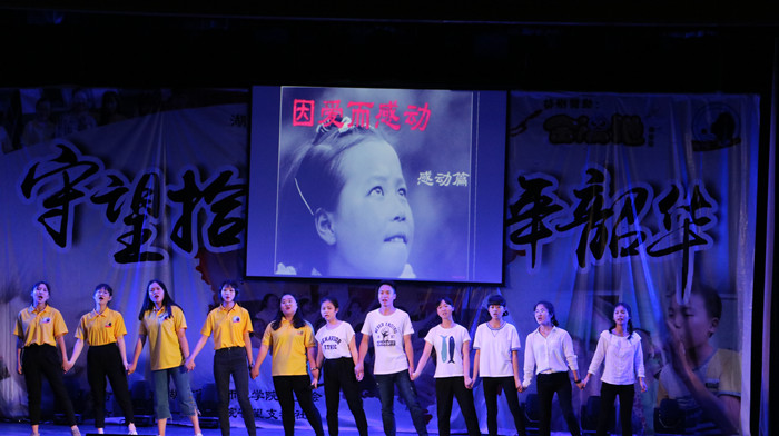 随后,社团成员表演由他们自编自导的舞台剧《梦回支教,青春里》。剧本演绎了一名大学生穿越到2014年守望湘西坐苦坝支教点,从一开始对支教生活的抱怨到最后被山区的孩子们所感动的种种经历,让同学们如临其境一起回到那年支教的夏天,回到难忘的支教时光,体会到“也许老师们能给孩子带去的仅仅只是打开外面世界的一角,但他们反馈给我们的确是内心永恒的一束阳光”。
