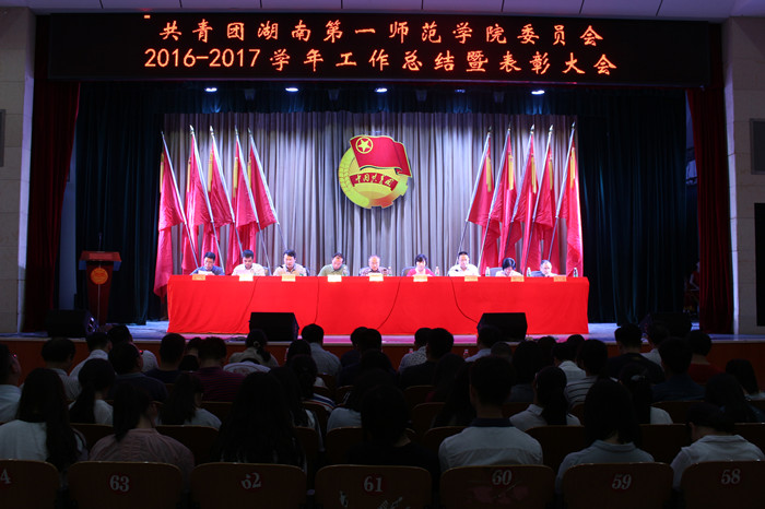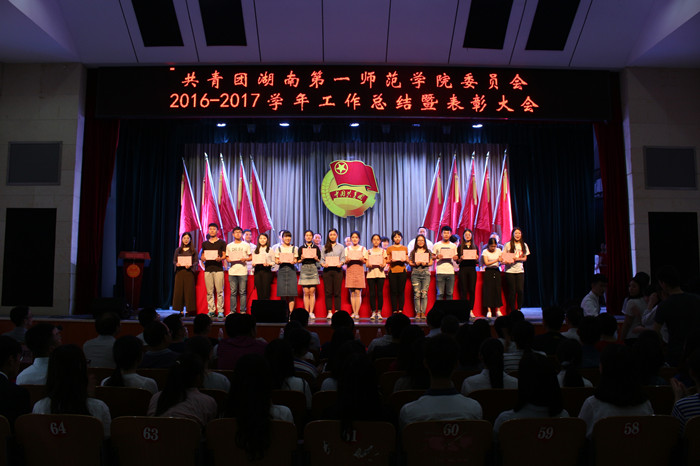 大会宣布了《关于表彰2016-2017学年先进团组织、优秀个人的决定》《关于表彰2017年团学工作特色品牌项目的决定》《关于表彰第十二届“挑战杯”湖南省大学生课外学术科技作品竞赛活动获奖作品的决定》。大会授予文学与新闻传播学院团总支、外国语学院团总支“活力团总支”称号,授予数学与计算科学学院团总支、城南书院团总支、音乐舞蹈学院团总支“红旗团总支”称号,对85个集体和923名优秀个人进行了表彰。此外,大会还分别为文学与新闻传播学院团总支、马克思主义学院蓝家乐同学颁发了“省五四红旗团总支”“省优秀共青团员”的奖状,对第十二届“挑战杯”湖南省大学生课外学术科技作品竞赛活动校内23件获奖作品的创作团队进行了表彰,并为先进集体、优秀个人颁发了锦旗、奖状。