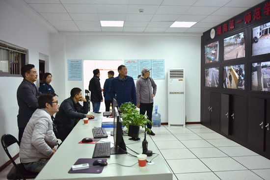 检查组一行首先查看了学生公寓、食堂、图书馆、教学楼、危化品保管室、视频监控中心、消防控制室等重点要害部位的人防、物防和技防建设情况,详细查阅了有关工作台账。随后,检查组深入到学生中间进行了校园安全感测评。检查组一行还认真查看了我校建立健全综治目标管理责任制、奖惩制度、履行工作职责、综治工作机制、治安防控体系、校园安全管理、应急管理等综治及平安校园建设工作原始材料。