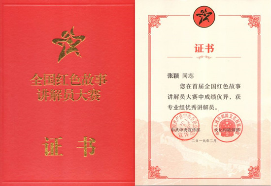 首届全国红色故事讲解员大赛于2018年11月27日至12月3日在上海举行。经湖南省委宣传部层层选拔,张颖代表湖南参加了专业组的比赛,与来自各省(自治区、直辖市)、新疆生产建设兵团以及军队的100余名讲解员同场竞技,成绩优异。