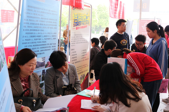 仲春四月,春和景明。4月12日,我校2019届毕业生大型供需见面会在东方红校区润之广场举行。本次招聘会共有288家用人单位,提供12000多个就业岗位,2000余名学生参加招聘会。校党委书记彭小奇、校长童小娇、校党委副书记刘志敏、副校长江正云到现场指导工作。