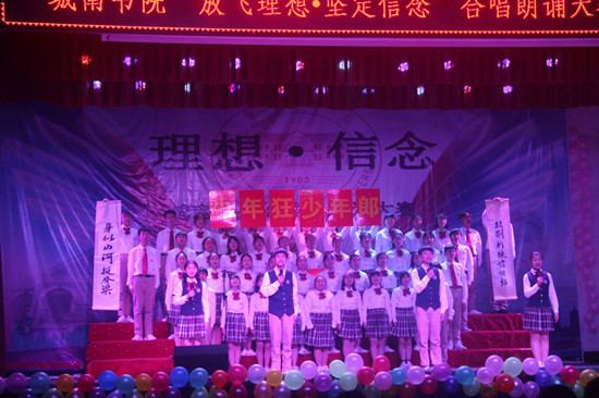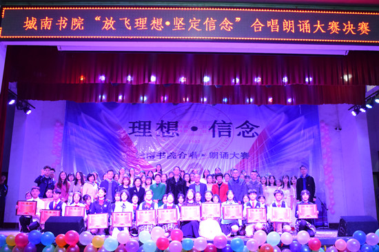 城南书院2019年“放飞理想·坚定信念”合唱朗诵大赛决赛于4月11日晚7点在城南书院校区大礼堂隆重举行。校党委书记彭小奇、校党委委员、组织统战部部长彭晓辉及学校相关部门负责人、城南书院师生代表观看了比赛