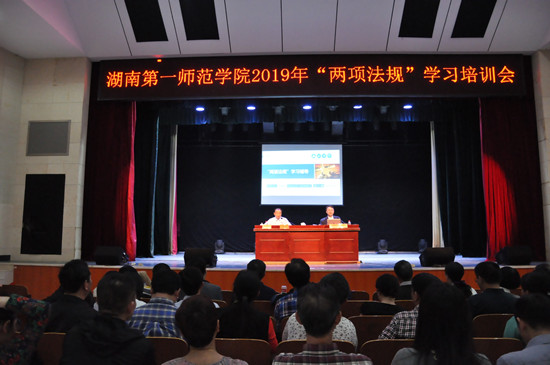 4月19日下午,我校在特立楼演播厅召开了领导干部个人有关事项填报及“两项法规”专题培训会,学校副处级以上领导干部参加了培训。校党委副书记刘志敏出席并做总结讲话。