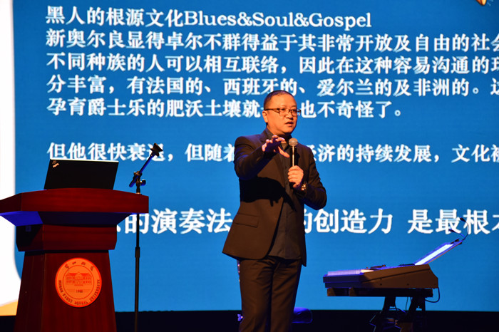 “华人文化大讲堂”旨在打造湖南乃至全国深具影响力的文化高端讲坛。以弘扬优秀文化,传播高尚价值为己任,邀请国内外卓有成就的一流华人艺术家,采取边讲边演的方式,让文化大家引领大家走进文化艺术殿堂。本场讲座是华人大讲堂第二期,讲座主题是:世界在耳边——爵士乐的前世今生。