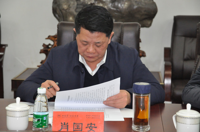 省委教育工委书记、省教育厅党组书记、厅长肖国安同志点评本次民主生活会。他认为,我校班子民主生活会效果很好,会前材料准备充分,会议民主氛围浓厚,对照检查原因分析非常透彻,整改措施比较实在。同时也认为,第一师范在省内高校中历史悠久,知名度高,红色文化底蕴深厚,现今快速稳健发展。就如何进一步加强领导班子建设,他提出了四点希望:第一,进一步切实增强工作进取心,加强工作活力;第二,进一步增强大局意识,加强工作合力;第三,进一步增强担当精神,加强工作执行力;第四,进一步增强廉政意识,加大反腐倡廉工作力度。
