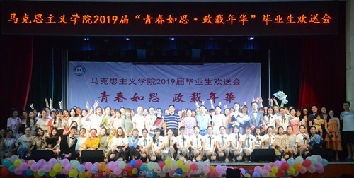 6月20日晚,马克思主义学院2019届毕业典礼暨毕业生欢送晚会在特立楼实验剧场成功举办。校党委委员、宣传部部长赵小群、学工部部长陈志武、校团委副书记罗祥云、马克思主义学院党政领导班子全体成员及师生代表400余人参加活动。
