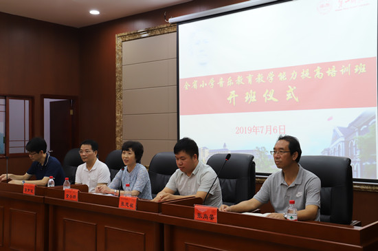 7月6日上午,全省小学音乐教育教学能力提升培训班开班仪式在我校城南书院校区图书馆多功能报告厅举行。校长童小娇、省教育厅体育卫生与艺术教育处干部张志敏、教育部艺术教育委员会委员兼副秘书长郭声健、城南书院党政班子成员及全省140多名小学音乐教师参加开班仪式。开班仪式由城南书院副院长刘大维主持。