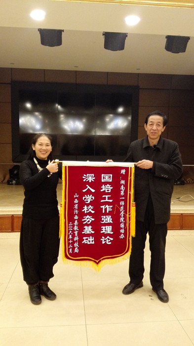 本次跟踪回访活动得到了山西省汾西、石楼等县市和湖南省邵阳、怀化等县市教育局及乡镇政府的大力支持。山西省汾西县体教局给我校赠送了“国培工作强理论,深入学校夯基础”的锦旗。曾小玲山西一行走访了山西省汾西县勍香北街小学、汾西县下团柏小学等,她还给回访的校长和山西省汾西县的老师做了“做智慧的教育”专题讲座,并深入学校,查看师生食堂,了解学校软硬件设施,与教师、校长座谈,并结合当地实际,针对学校管理和教学中存在的问题和困惑,进行学校管理的现场诊断,提出解决问题的思路。黄朝霞湖南一行走访了湖南省武冈市头堂乡新东九年制学校、洞口县岩山镇中心小学和绥宁县金屋学校等。通过深入课堂听课评课,深度剖析课堂,指导教学,促进乡村教师专业成长,同时为受训的乡村校长走出学校管理瓶颈提供了有效指导。