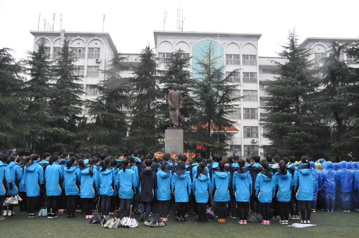 12月26日是我们中华人民共和国的缔造者、湖南一师杰出校友——毛泽东同志诞辰123周年纪念日。我校在城南书院校区“青年毛泽东”铜像前举行了简朴而庄严的纪念仪式。校领导彭小奇、童小娇、刘志敏、刘鸿翔、李克勤、刘宇、李昱、江正云、湖南财政经济学院党委书记肖湘愚、湖南女子学院校长杨兰英,副处以上干部、离退休老同志代表及师生代表400余人参加了活动。