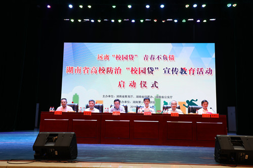 9月20日下午,湖南省防治“校园贷”宣传教育活动启动仪式在我校田汉剧场举行。该活动由湖南省教育厅、省扫黑办、省公安厅主办,Kaiyun官方网站登录入口承办。省教育厅党组成员、省委教育工委委员郭建国,省公安厅刑侦总队总队长敖平洋,省委政法委基层社会治理处处长、省扫黑办处长李明海,我校党委书记彭小奇、副校长刘宇以及省教育工委、省教育厅、省公安厅相关部门领导出席仪式。仪式由省教育厅学校安全管理处处长朱日红主持。