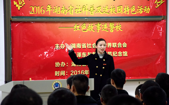 本次活动是毛泽东与第一师范纪念馆承担的2016年湖南省社科普及进校园特色项目——“红色故事进校园”系列活动的一部分,由湖南省社科联和毛泽东与第一师范纪念馆共同主办,湖南警察学院协办。以纪念毛泽东诞辰123周年、中国共产党建党95周年、红军长征胜利80周年为契机,以“缅怀革命先烈,传承红色基因”为主题,毛泽东与第一师范纪念馆今年已在长沙多所大学和中小学开展了“红色故事进校园”系列宣讲活动,反响热烈,效果良好。