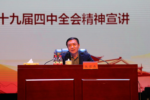 11月25日下午,学习贯彻党的十九届四中全会精神省委宣讲团首场报告会在我校东方红校区田汉剧场举行,省委宣讲团成员、省委常委、省委宣传部部长张宏森为我校师生做现场报告。会议由校党委书记彭小奇主持。