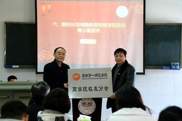 2020年1月12日,我校商学院校友分会成立暨挂牌仪式在东方红校区玉衡楼南604隆重举行。副校长、校友总会副会长刘鸿翔、副校长曹兴以及校友总会秘书长邓朝晖、商学院党政领导和校友代表40余人出席会议。会议由商学院党总支书记张福国主持。