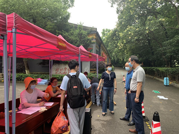 6月6日,城南书院校区六年制公费定向师范生2018级学生返校复学。校党委书记彭小奇、校长童小娇、副校长刘鸿翔,以及学校相关职能部门负责人、城南书院校区领导班子深入学生返校一线,检查指导学生返校复学报到工作,慰问工作人员和返校学生。