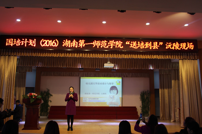 沅陵“送培到县”活动由我校幼师国培首席专家万湘桂带队,授课专家由长沙市岳麓区第八幼儿园园长彭青青、长沙市教育局幼儿园保教主任刘缀雯、中南大学幼儿园骨干教师邹勇、曾兰、沅陵县机关幼儿园骨干教师陈凤、陈云等人组成。共有300多名幼儿教师参加了此次培训活动。