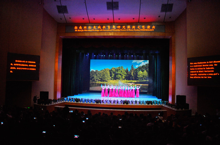 我校二附小的小朋友带来的少儿舞蹈《辣椒辣》拉开了演出的帷幕,并瞬间点燃了全场气氛。欢快的音乐和俏皮的舞蹈表现出童稚的可爱,让来自各国的友人感受到了火辣辣的湖湘热情,获得了台下阵阵掌声。我校带来的男声独唱《我的太阳》、群舞《侗乡踏歌情》、男声小组唱《澧水船夫号子》、琴歌《阳关三叠》、笛子独奏《春到湘江》、女声独唱《艺术向我召唤》、舞蹈《多彩潇湘》将文艺演出推向一个又一个高潮。来自中南大学、长沙医学院、湖南大学、湖南理工学院、湖南师范大学的留学生也先后为大家表演了极具异域风情的精彩节目,赢得了在场观众的一致好评。