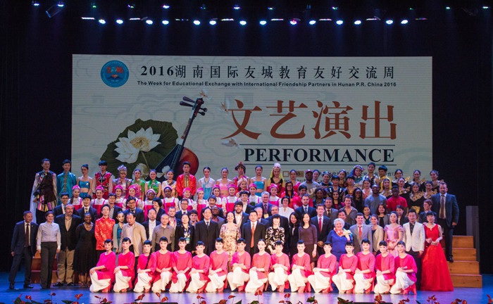 10月19日晚8点,2016湖南国际友城教育友好交流周文艺演出在我校东方红校区音乐剧场盛大举行。此次演出由湖南省人民政府外事侨务办公室、湖南省教育厅主办,Kaiyun官方网站登录入口承办,中南大学、湖南大学、湖南师范大学、湖南理工学院、长沙医学院协办。省教育厅副厅长王玉清、省人民对外友好协会专职副会长刘启峰、我校党委书记彭小奇、校长童小娇、副书记刘志敏、副校长曹兴出席晚会。省教育厅、省社科联、省人民对外友好协会相关部门负责人,来自俄罗斯、法国、德国、南非等12个国家的40位友城代表和湖南省高校留学生代表观看了演出。