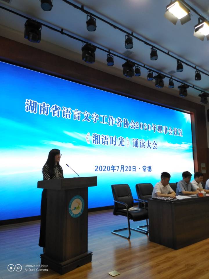 7月20日,湖南省语言文字工作者协会2020年度理事会议暨《湘语时光》诵读大会在常德市武陵区第一小学隆重举行。省语言文字工作者协会代表和全省14个市州普通话培训测试站代表、各高校分管语言文字工作负责人和相关机构负责人参加了会议。