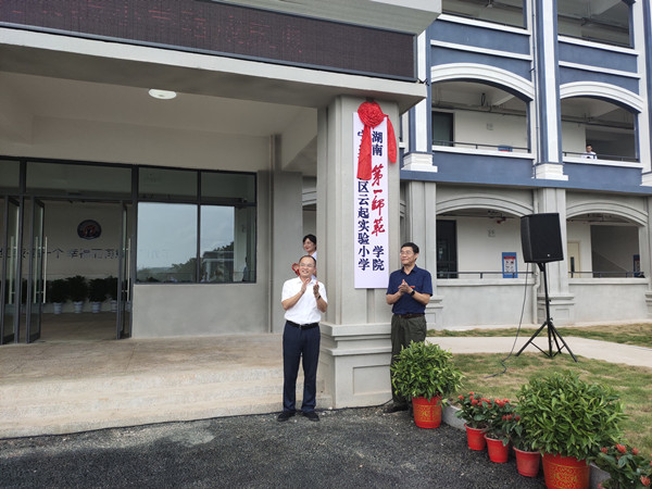 江正云、郑旗、宁乡市金州镇党委书记童志国、宁乡市教育局副局长喻汉科共同为学校揭牌。