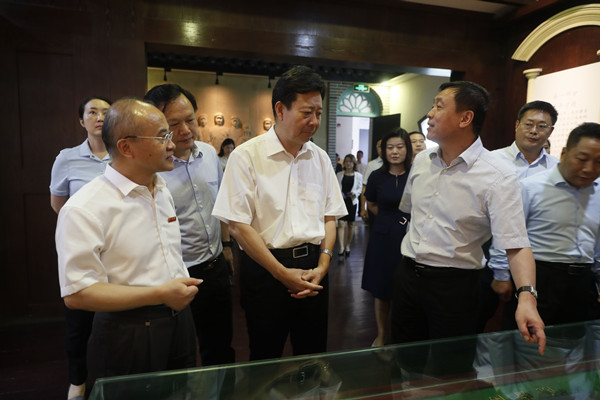 9月15日上午,文化和旅游部党组成员、副部长李群一行八人来我校调研。湖南省委常委、宣传部部长张宏森、省委宣传部副部长、省文旅厅党组书记、厅长禹新荣、二级巡视员王鹏以及长沙市政府副市长朱东铁、天心区委书记刘汇等陪同调研。我校党委书记彭小奇、副校长刘鸿翔、校党委委员、宣传部部长赵小群、纪念馆馆长艾建玲一同参与调研。