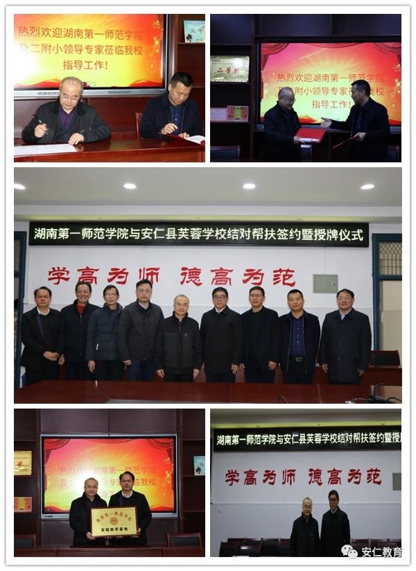 11月27日,我校与安仁县芙蓉学校举行结对帮扶协议暨授牌仪式。安仁县委副书记、县长李建军,县委常委、宣传部部长雷志平,副县长卢良柏,县教育局局长刘英,我校党委书记彭小奇,教务处、教育科学学院及第二附属小学负责人出席仪式。