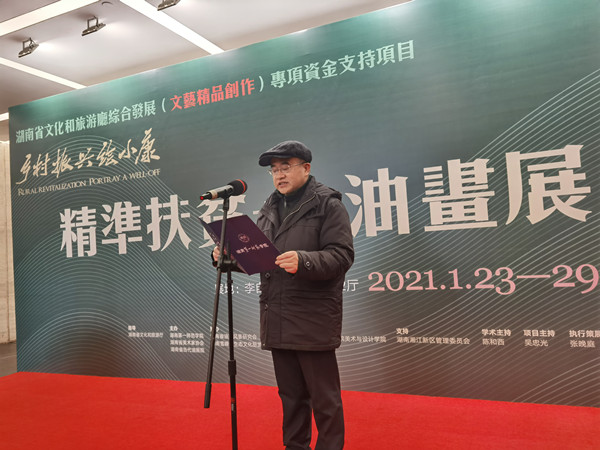 1月23日下午,“乡村振兴绘小康——精准扶贫主题油画展”在李自健美术馆C展厅举行,来自北京、上海、江苏、四川、山东、台湾、海南等地的油画名家和湖南油画精英的精准扶贫主题油画创作荟萃一堂,讴歌时代伟绩,描绘美丽乡村。省文化旅游厅副巡视员王鹏、Kaiyun官方网站登录入口校党委书记彭小奇、校党委委员、宣传部部长赵小群、省文联副主席段江华、省美协副主席陈和西、李自健美术馆馆长李自健等,以及我校美术与设计学院院长李华、党总支副书记舒克斌、副院长蔡惠萌等参加了画展。