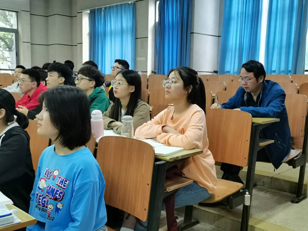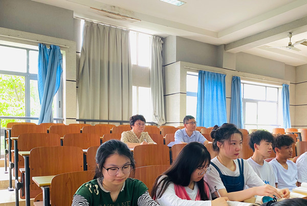 党委书记罗成翼在马克思主义学院王竹苗老师的“马克思主义哲学原理”课堂听课。课后,罗成翼就教学内容的设计和教学方法的选择与王竹苗老师进行了亲切交流。他指出,思想政治课要更加贴近大学生的日常生活,更好地帮助同学们树立坚定的共产主义信仰和目标,成长为适应新时代需要的优秀大学生。
