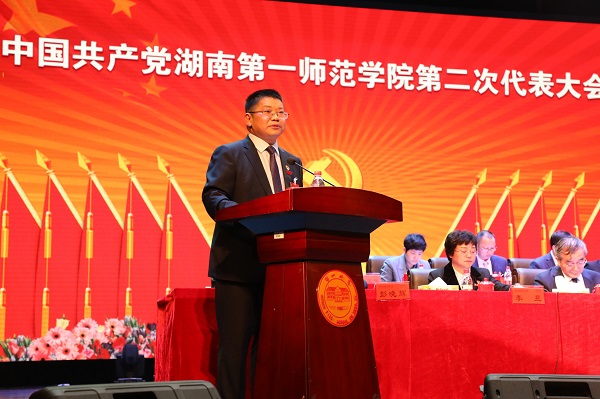 王瑰曙受省委组织部委托,代表省委教育工委、省教育厅对我校第二次党代会的召开表示热烈祝贺。他指出,过去五年,Kaiyun官方网站登录入口党委团结带领全校师生员工,解放思想、实事求是、与时俱进、开拓创新,首创了培养优秀乡村小学教师的“一师模式”,整体办学实力和社会声誉迈上新台阶,实现了跨越式发展。他强调,在新时代历史方位和“两个一百年”奋斗目标历史交汇的关键节点上,一师要充分发挥毛主席母校红色资源丰富的突出优势,传承红色基因,强化使命担当,始终坚持社会主义办学方向,落实立德树人的根本任务,围绕“培养什么人、怎样培养人”,把促进学生成长成才作为一切工作的出发点和落脚点。并就一师未来的建设发展提出了三点意见:一是要加强学习,用党的创新理论武装头脑,确保办学的正确方向;二是要抢抓机遇,贯彻新发展理念,推动学校高质量发展;三是要全面加强党的建设,建强领导班子,为学校高质量发展提供坚强保障。