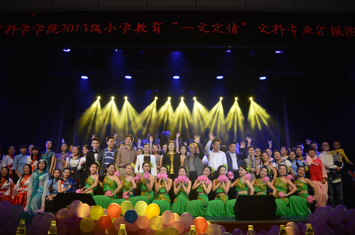 5月27日晚,教育科学学院2013级小学教育文科班“一文定情”专业汇报演出于科技楼实验剧场隆重举行。校党委书记彭小奇、招生就业处处长黄小喜、马克思主义学院党总支副书记谭小红、陇南师专初等教育学院副院长姚鹏、长沙理工大学子弟小学校长余丽英,教育科学学院负责人蒋蓉、张俭明及全体辅导员、小学教育教研室老师应邀出席,与到场学生约500余人一起观看了演出。