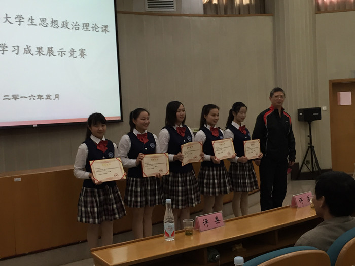 5月21日上午,湖南省第二届大学生思想政治理论课研究性学习成果展示竞赛圆满落下帷幕。此次竞赛由湖南省教育厅主办、湖南农业大学承办。我校由马克思主义学院钟佩君副院长带队、宋徽瑾老师指导的外国语学院2014级六年制公费定向师范生李寒娟、文子怡、黄雨晴、彭佳艳、李苹5人组成的研究小组,囊括了本科组的7个最高奖项。在全省30多所本科院校中,我校获得本科组决赛冠军,宋徽瑾老师获得“优秀指导老师”奖,5名学生荣获一等奖。