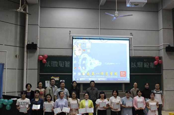 5月24日晚,由校团委和教务处共同组织的以“以微见著,以课起航”为主题的2016年微型课大赛决赛在东方红校区文科楼报告厅隆重举行。校党委委员、团委书记任晓晴、教务处副处长黄国盛、教务处实践科科长李建亚以及400余名学生观看了此次比赛。大赛评委由教育科学学院尹桂荣老师、数学与计算科学学院何艳丽老师、外国语学院孙军秀老师、信息科学与工程学院阳西述老师和音乐舞蹈学院王文军老师担任,另外,由学校各二级学院选出的28名优秀代表组成大赛大众评审团。