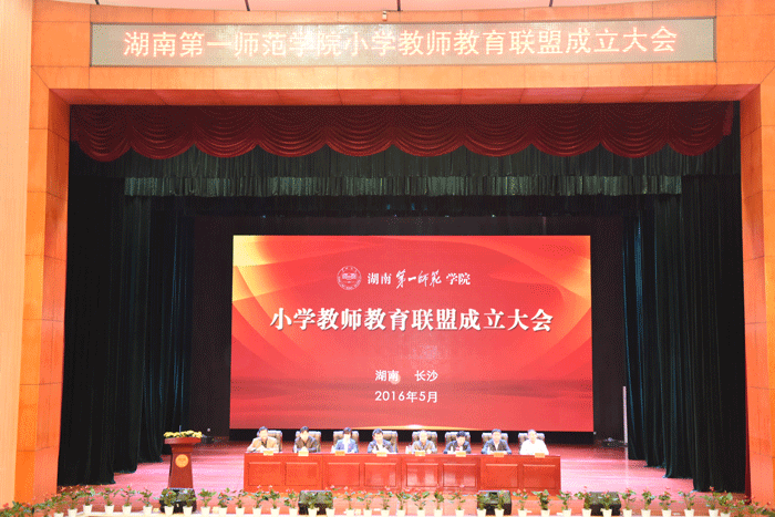 5月15日上午,我校小学教师教育联盟成立大会在东方红校区音乐剧场隆重召开。湖南省教育厅副厅长王建华,湖南省教育厅高教处、教师处、基教处主要负责人,长沙市各县区教育局局长、知名小学校长,我校党委书记彭小奇、校长童小娇、党委副书记刘志敏、副校长江正云出席会议。成立大会由江正云副校长主持。