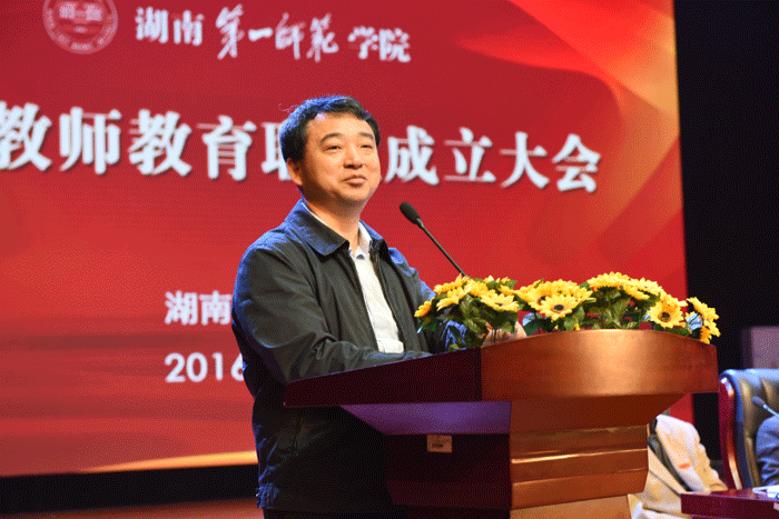 最后,湖南省教育厅副厅长王建华发表了重要讲话。 王建华指出,作为一代伟人毛泽东主席的母校,湖南一师办学历史悠久,底蕴深厚,为中国革命事业和教育事业做出了突出贡献,特别是坚持“培养小学教师,培训小学教师,研究小学教育,造就民族英才”的办学理念,形成了鲜明的小学教师教育特色和优势,积累了丰富的多元化培养小学教师的实践经验。这次湖南一师联合市区教育主管部门和各合作小学发起建立小学教师教育联盟,是落实教育部关于实施卓越教师培养计划以及我省教育强省战略的务实之举,对于进一步深化师范院校与地方教育主管部门及各小学之间的合作,推进优质教育教学资源共享和小学教师教育的协同创新,促进高校转型发展和基础教育的提质升级,具有十分重要的意义。王建华强调,当前,摆在全省基础教育工作者面前的核心任务就是深入推进基础教育课程改革,全面实施素质教育。希望各合作小学抓住机遇、勇于探索、开拓进取,争做基础教育改革创新的倡导者和实践者,进一步加强与师范院校的沟通交流,鼓励教师在教研教改等方面与湖南一师教师开展深入合作,推荐经验丰富的优秀教师担任师范生的学业导师,指导师范生开展实践活动,建立一批稳定的师范生教育实践基地。地方教育主管部门要承担起宏观管理、内外联通的工作职责,协同湖南一师共同开展各类教育实践活动,遴选一批办学理念先进、管理水平较高、师资力量较强、教学条件较好的学校作为联盟成员单位,推荐优秀教育工作者作为联盟专家和学业导师。同时,湖南一师要充分发挥好联盟召集单位的作用,建立完善联盟合作机制和议事制度,推进联盟各项工作的贯彻落实。