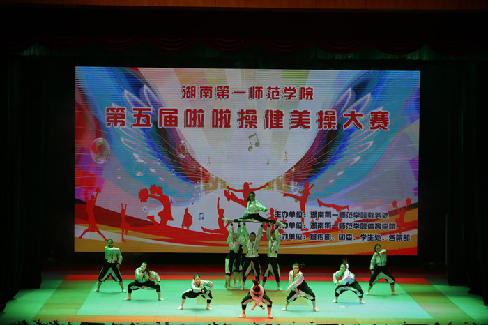 啦啦操、健美操是我校的传统优势体育项目,校队的竞技水平在省内高校中名列前茅,各二级学院的啦啦操、健美操竞技氛围也非常浓郁。校健美操队和来自全校10个二级学院的队伍参加了18个项目的比赛。赛场上,选手们舒展大方、刚劲有力的动作和振奋昂扬的精神斗志充分展现了一师学子的青春风采。