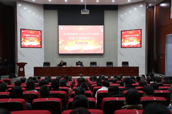 12月16日下午,学习贯彻党的十九届六中全会精神省委宣讲团报告会在我校东方红校区大学生创新创业大楼报告厅举行。省委宣讲团成员、湖南省委党校党建教研部主任李美玲教授来校作宣讲报告,校党委书记罗成翼主持报告会。全体在家校领导、党委委员、全体处级干部、机关科级干部和学生代表共200余人参与学习。