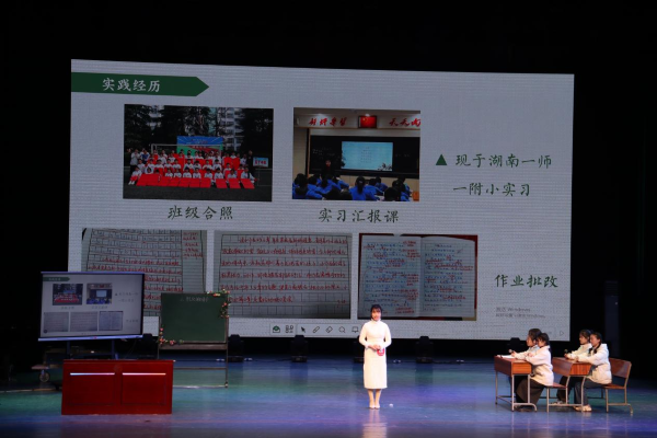 经过初赛、复赛、半决赛的激烈角逐,共有10名选手进入决赛,决赛由模拟课堂、即兴教育问答、才艺展示三个部分组成。选手运用所学的专业知识,以不同的方法、角度精彩地展示了教学内容,从容不迫的回答评委提出来的各种问题,各位参赛选手的综合素养得以充分展现,其中教育学院的杨阿龙同学带来的课堂《好饿的毛毛虫》形式新颖,气氛活跃,在场观众的热情也被他的激情点燃;外国语学院的王思颖同学带来了一堂气氛愉悦、简明高效的英语课,展示了学校师范生的课堂教学技能水平。