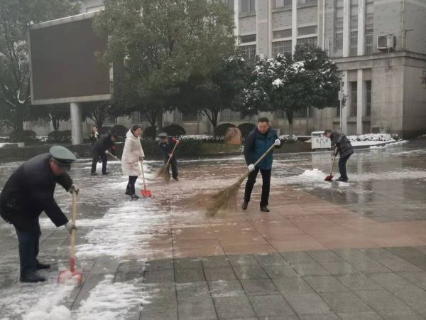 2月22日,长沙再次迎来一场大雪。瑞雪纷扬、银装素裹的校园格外美丽,但湿滑的积雪也给师生的出行带来了诸多不便。为了确保校园内水电平稳运行、道路平安顺畅、环境美丽整洁,基建与后勤处党支部贯彻落实“三聚焦、三抓实”党建引领工程要求,立即启动应急机制,迅速会同天创保利物业开展暴雪天气应对工作。