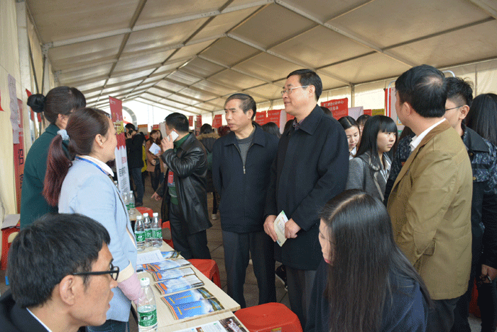 3月25日,我校2016届毕业生大型供需见面会在东方红校区中轴广场举行,2016届3700余名毕业生参加了此次供需见面会,当天与用人单位达成就业意向的学生503人。校领导彭小奇、童小娇、刘志敏、江正云亲临现场了解毕业生供需见面情况,与用人单位交流,了解用人单位需求计划、发展前景及对我校培养学生的要求等,还与毕业生亲切交谈,了解他们就业意向,鼓励毕业生大胆推荐自己。