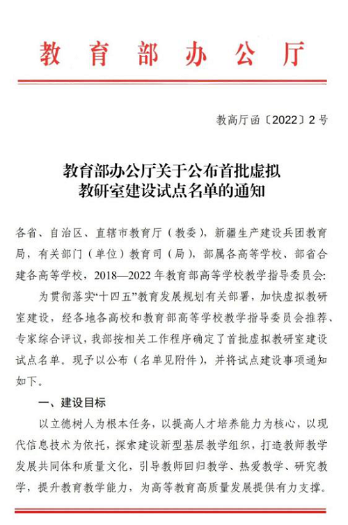 近日,教育部办公厅公布首批虚拟教研室建设试点名单,我省7所本科高校的13个虚拟教研室入选,我校蒋蓉教授领衔的“小学语文课程与教学论课程”虚拟教研室位列其中。