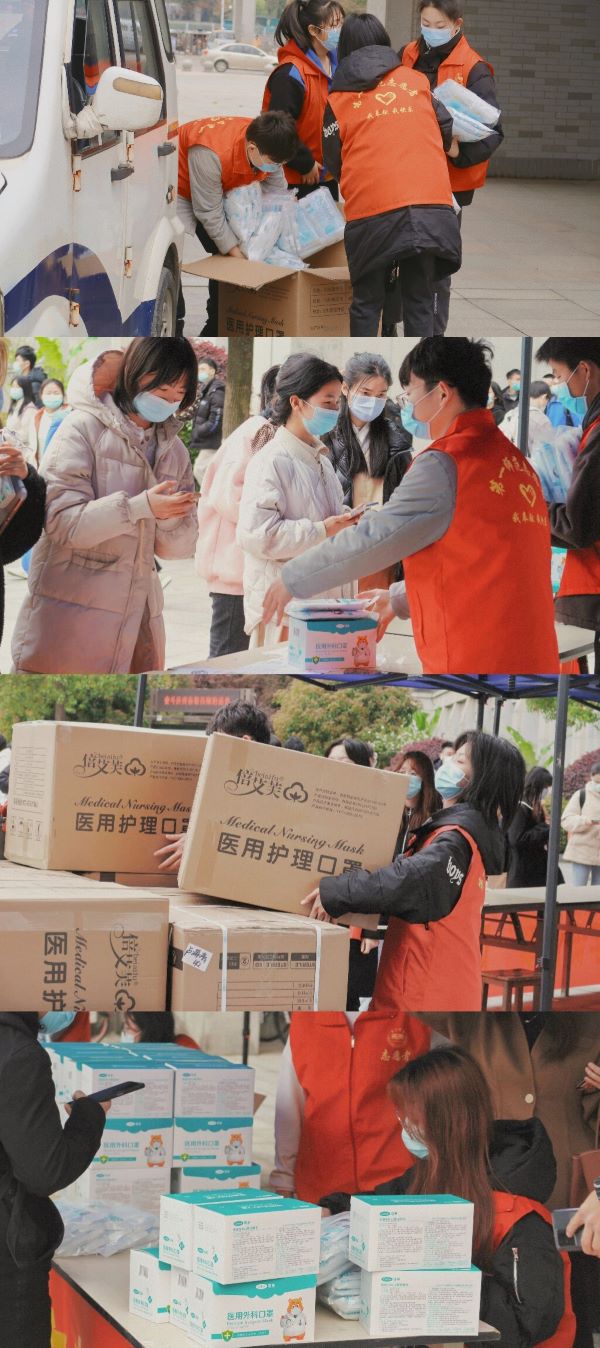 在寝室楼栋、图书馆前后门,也处处可以看到认真执勤、温馨提醒大家佩戴口罩的志愿者身影。校团委副书记易利介绍说:“同学们参加志愿活动都很积极,疫情防控青年突击队4个小时就招募到了796位志愿者。网络与新媒体专业的大二学生贺晨欣高位截瘫,也毅然参加了此次志愿者活动,为防疫工作奉献了力量。”