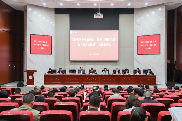 会上,校党委书记罗成翼对文件《关于贯彻落实办学新理念 服务“强师计划”和 “强省会战略”的实施意见》(以下简称《实施意见》)作动员报告并部署工作。