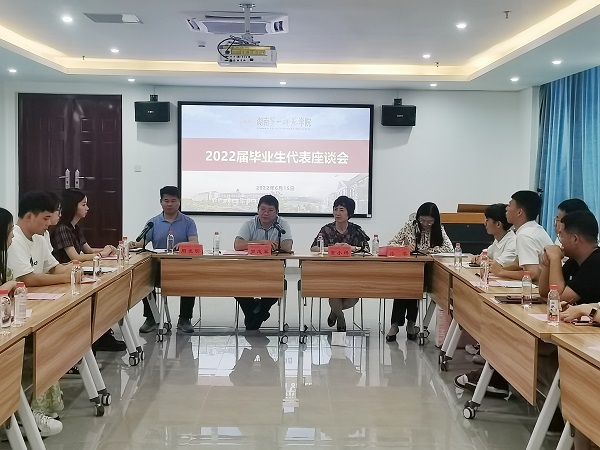 6月15日上午,我校在百熙楼414举办2022届毕业生代表座谈会,校领导罗成翼、童小娇、周发明、蒋蓉出席,党委学生工作部、教务处、招生就业处、校团委主要负责人,以及各二级学院30名毕业生代表参加了会议。会议由校党委委员、副校长蒋蓉主持。