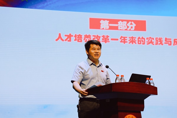 会上,罗成翼作了题为《推进课程“两性一度”建设,全面提升人才培养质量》的专题报告。报告以详实的数据分析,直面学校目前在教学、管理方面存在的问题;以问题为导向,充分强调课程“两性一度”建设对提升我校人才培养质量的重要意义;对如何精心组织、扎实推进课程“两性一度”建设,朝着特色鲜明的师范大学迈进进行学习动员和工作指引。