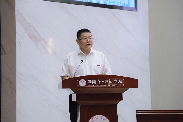 7月10日,由我校主办、湖南省思想政治工作名师工作室与马克思主义学院承办的新时代高校“大思政课”建设与“大思政”育“大先生”全国学术研讨会,在百熙楼228报告厅举行。会议采取线上线下相结合的方式进行,来自北京大学、中国人民大学、武汉大学、华南师范大学、南京航空航天大学、湘潭大学等高校的数十名知名学者和数百名师生参加了此次活动。校领导罗成翼、童小娇、曹兴、周发明、李昱出席。