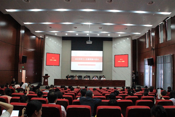 为了进一步加强新形势下大学生思想政治教育工作,全面贯彻落实学校办学新理念,切实加强辅导员队伍建设,提高辅导员工作能力和三全育人水平,促进辅导员职业化、专业化发展,我校于7月8日-10日举办了2022年暑期学生工作人员培训,校党委书记罗成翼、校党委委员、副校长蒋蓉出席并作了主题报告,党委学生工作部、保卫处、校团委负责人以及各二级学院党委书记、主持工作的党委副书记、分管学生工作的党委副书记、学工办主任、分团委书记、专职辅导员、专职组织员、班主任、相关工作人员参加了培训。