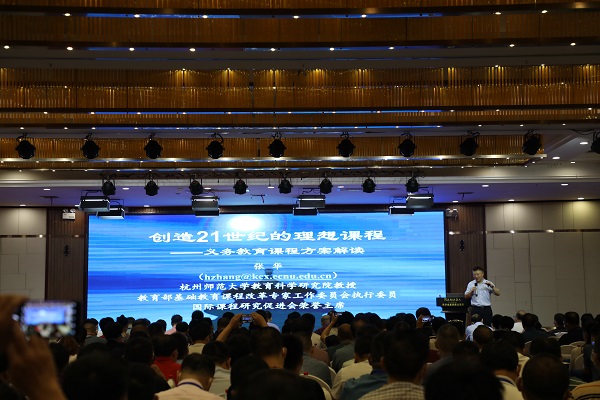 开班仪式后,特邀嘉宾、教育部义务教育课程标准修订指导组成员张华教授作了《创造21世纪的理想课程—义务教育课程方案解读》主题报告。张教授高屋建瓴,从未来教育观、核心素养观、理解性教学观、跨学科学习观、表现性评价观等多个维度对新修订的义务教育课程方案进行了全方位解读,为大家生动描述了21世纪中国教育的愿景:让学生创造着长大,让教师创造着工作,让学校成为创造的乐园。