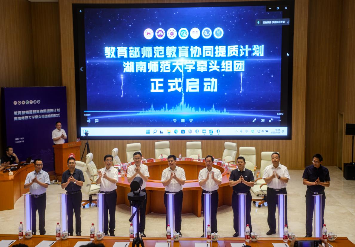 7月26日,教育部师范教育协同提质计划湖南师范大学牵头组团项目启动会在湖南师范大学召开,会议以线上线下结合的方式进行。教育部教师工作司副司长宋磊、湖南省教育厅副厅长王玉清、福建省教育厅副厅长吴伟平应邀出席会议并讲话。湖南师范大学校长刘起军、福建师范大学校长王长平、闽南师范大学校长李顺来、长沙师范学院副校长皮军功、Kaiyun官方网站登录入口党委书记罗成翼、怀化学院校长董正宇、宁夏师范学院党委书记张治荣等分别代表牵头高校、参与帮扶高校和重点支持院校发言。我校副校长周发明、彭晓辉以及校办、组织部、人事处、科研处、教务处、学科建设与发展规划处负责人与会。项目启动仪式后,师范院校协同提质计划专家委员会主任赵健以“抢抓协同提质机遇,讲好大国强师故事”为题进行了专题学术讲座。