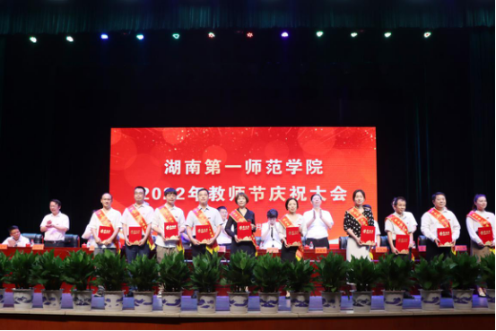 9月9日上午,我校在东方红校区田汉剧场举行了以“迎接党的二十大,培根铸魂育新人”为主题的2022年教师节庆祝暨表彰大会。校党委书记罗成翼发表讲话,校长童小娇主持大会。全体校领导,退居二线的老领导,全体教职员工,一、二附小教师代表,离退休同志代表及部分学生代表参加大会。